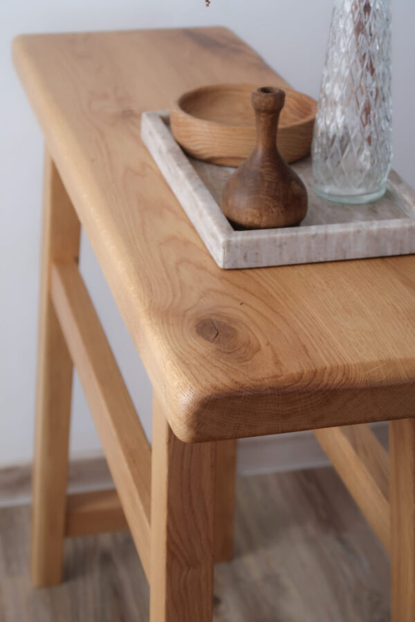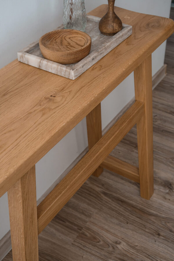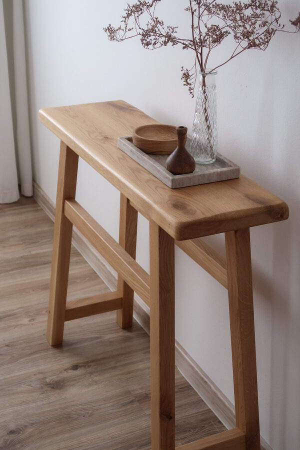 Konsola wykonana z drewna dębowego. Świetnie sprawdzi się w każdym pomieszczeniu. Naturalne drewno ociepli wnętrze i nada mu charakteru.
