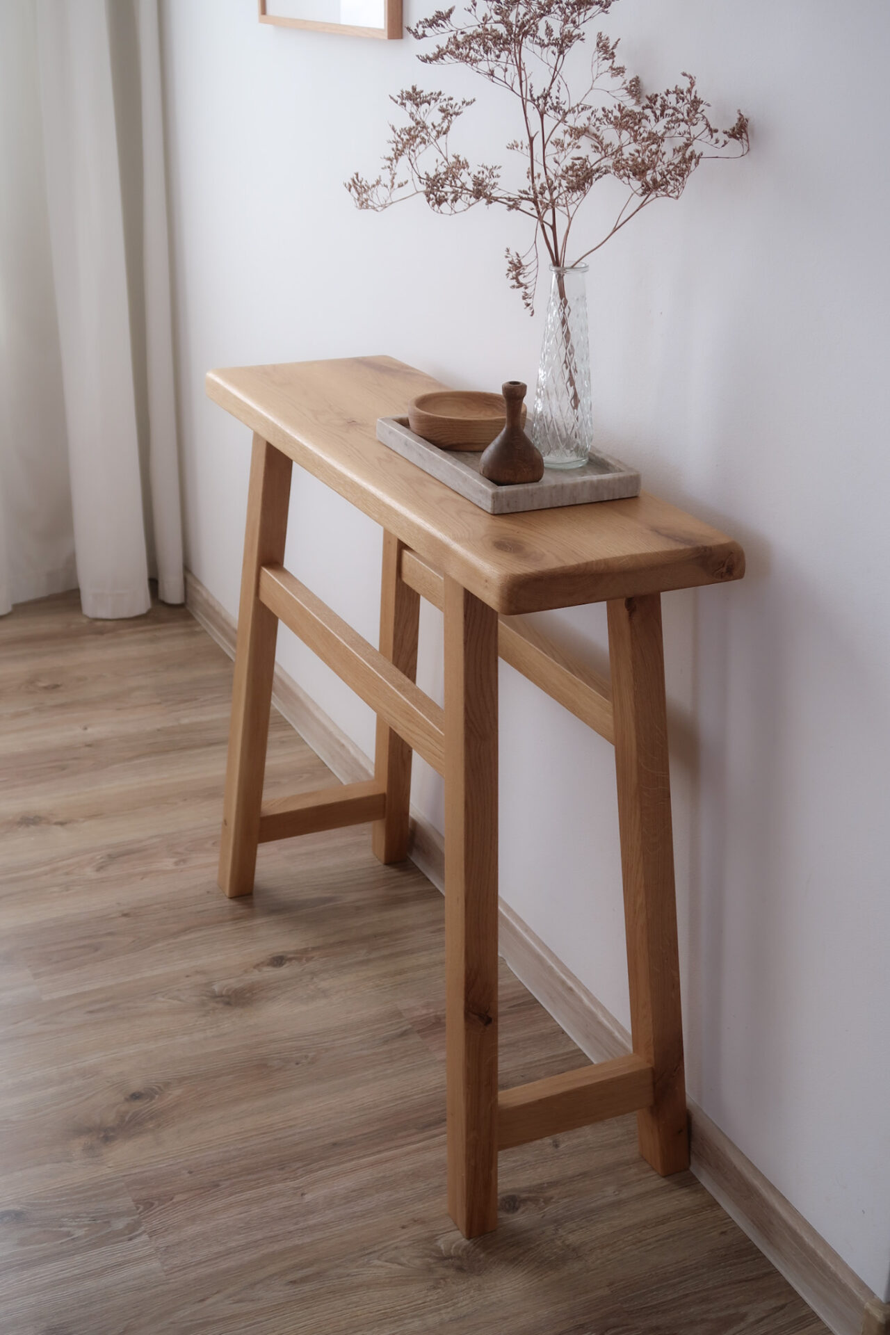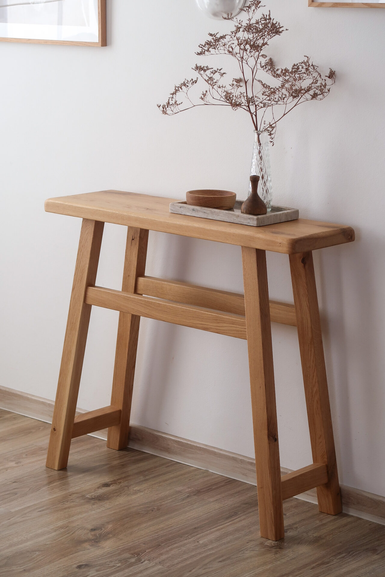 Konsola wykonana z drewna dębowego. Świetnie sprawdzi się w każdym pomieszczeniu. Naturalne drewno ociepli wnętrze i nada mu charakteru.