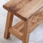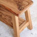 Ławka wykonana ze starej dębowej dechy o nieregularnym kształcie. Na ławce znajdziecie sęki i kilka charakternych pęknięć. Na dole zamontowaliśmy funkcjonalną półkę. W każdej ławce staramy się podkreślić walory starego drewna jakimi są sęki, pęknięcia i wydobyć wyjątkowy rysunek.