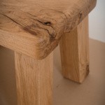 Stołek wykonany ze starego drewna dębowego. Zabezpieczony profesjonalnym olejo-woskiem do drewna. Wszelkie pęknięcia, sęki i przebarwienia to zamierzony efekt. Staramy się, aby podkreślić naturalny rysunek i kolor drewna oraz jego charakter.