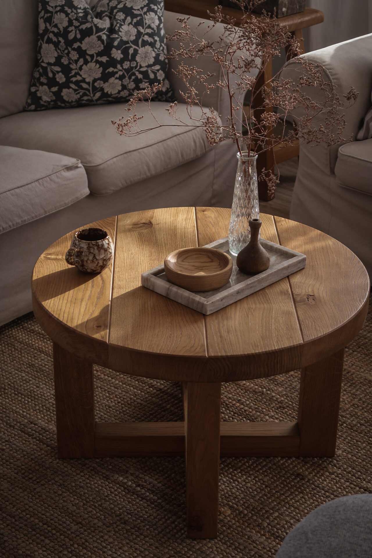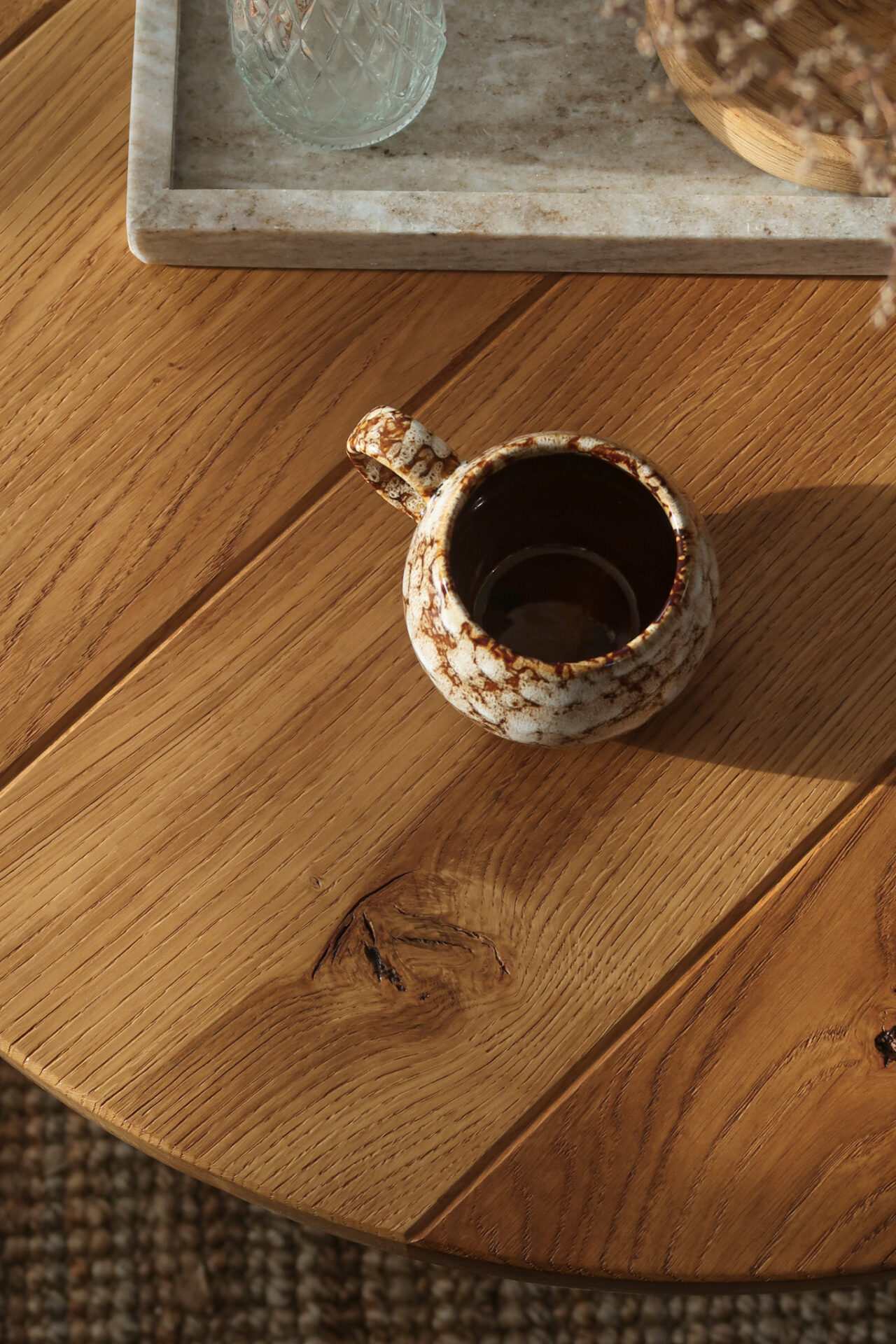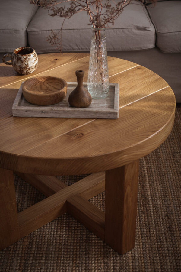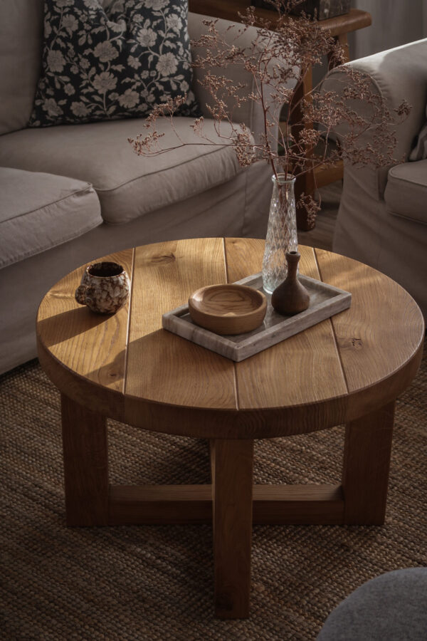 Stolik zrobiony z starego 40-letniego drewna dębowego, zabezpieczony profesjonalną glazurą do drewna. Wykonany na połączenia stolarskie co powoduje, że mebel przetrwa niejedno pokolenie. Sęki i pęknięcia to zamierzony efekt, który nadaje mu surowości i podkreśla jego naturalny charakter.